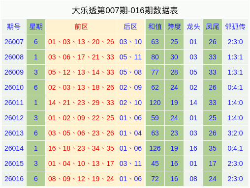 马德文大乐透26017期预测: