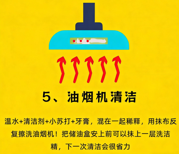 五、油烟机清洁:温水+小苏打+牙膏,重油污一擦就掉