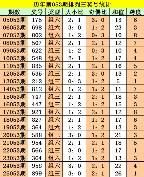 积年第053期奖号中:组三开出8次,组六开出13次。组三、组六基本十分,本期护理组六。