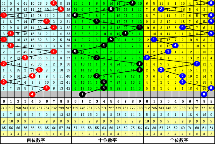 积年第053期枚举三奖号中,开出次数最多三码为:2、5、8,本期阻难号码:8。