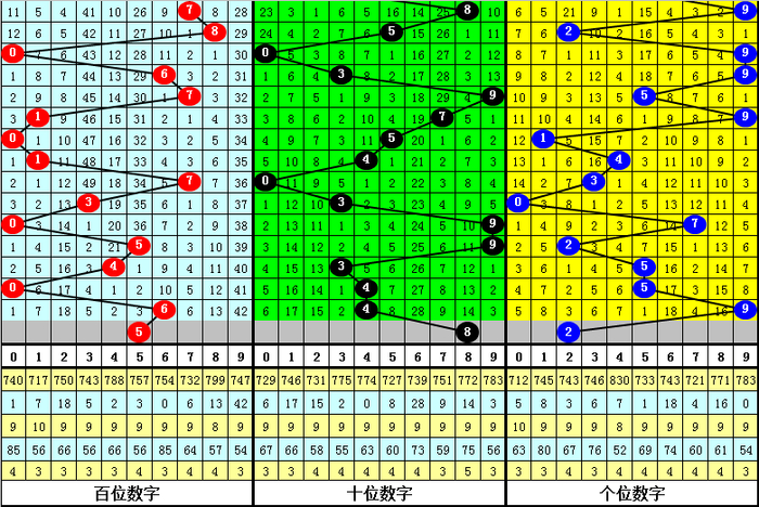 百位走势:近10期在0-7之间出号,跨度为8点,出号比拟分布,上期奖号为6,飞腾6点,本期展望该位走小。另外近10期该位大小比为3:7,大号较冷,本期戒备大号回补,柔和号码5。