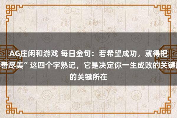 AG庄闲游戏APP把全部心思与精力放在工作上,以饱满的精神状态站好每班岗,才能在平凡岗位上创造不平凡业绩;钻一行、精一行是做事的目标,勤于思考、善于钻研,在干中学、学中干,不断提升专业能力,化平凡为非凡;精益求精是做事的追求,弘扬工匠精神,对工作一丝不苟、勇攀高峰,追求“尽善尽美”,希望成功,就得把“尽善尽美”这四个字熟记,它是决定你一生成败的关键所在。
