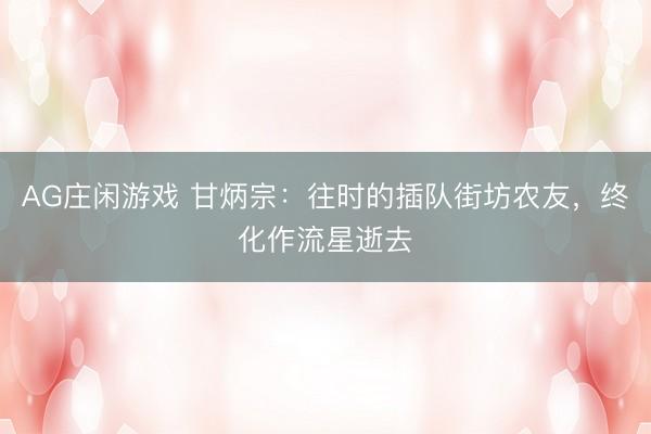 笔者自从三年前启动在当天头条写史创作以来,还是共享过几篇对于我老街坊农友甘炳宗(在咱们这代东谈主中,巨匠习尚叫他甘炳)的故事。尤其是2022年3月和4月,那时我永诀发布了两篇对于甘炳的著述,《解不开的知青情结:咱们下乡插队的小组长甘炳宗》和《再说插队农友甘炳宗,AG庄闲游戏APP成为空巢老东谈主前后的甜密与辛酸》。那时谁也没猜想,三个月前我在广州和他碰面的那次,竟成了死别!