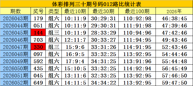 开奖总结:摆设三第2026052期奖号为:649,号码012路比为2:1:0。