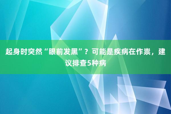 但需注意的是,有些眼前一黑状况的背后,可能是疾病在作祟。