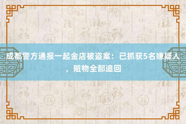 > 成都警方通报一起金店被盗案:已抓获5名嫌疑人,赃物全部追回